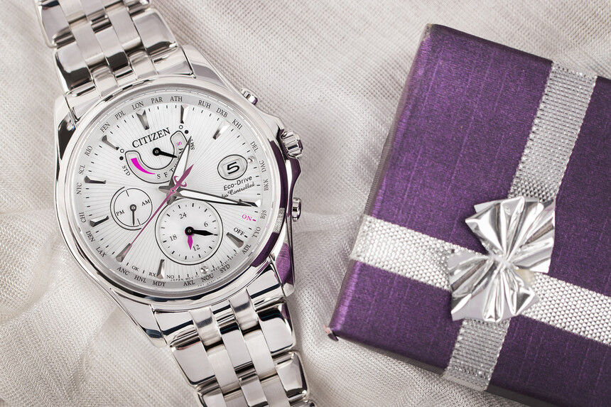 A ačkoli zde Citizen upřednostnil funkčnost, design rozhodně nezanedbal. Hodinky osloví sportovní elegancí a nápaditými detaily ve formě fialových akcentů a paprskovitého číselníku. Díky robustní konstrukci pak hodinky drží 100M voděodolnost a potěší také safírové sklíčko, které je prakticky nepoškrábatelné.