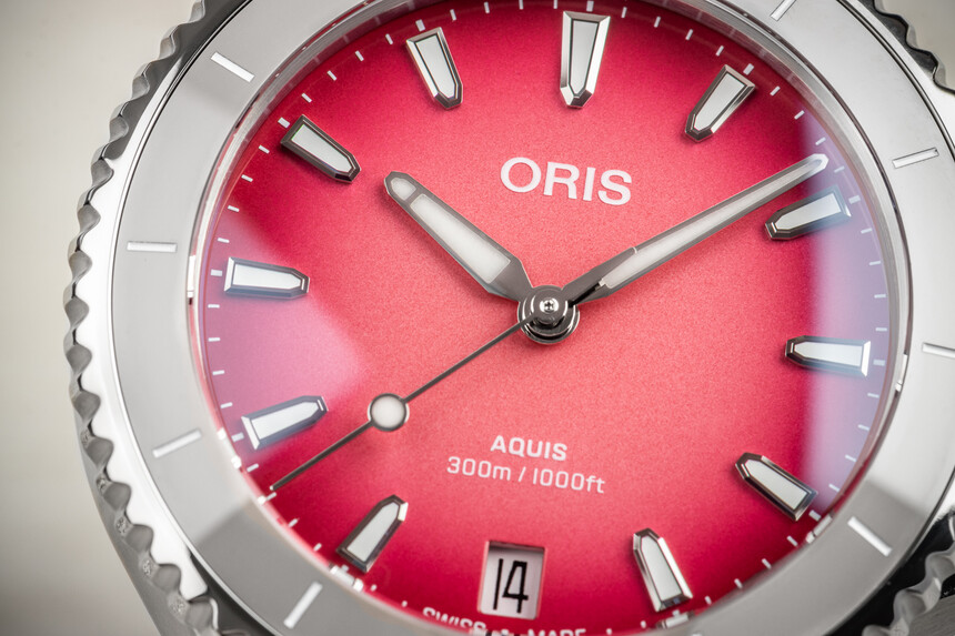 Jinak jsou to ale klasické Aquisy – ikonické potápěčské hodinky s třísetmetrovou voděodolností, které zná snad i hodinkový laik. U dámských variant Oris kompromisy taky nedělá, a z odolnosti pánských Aquisů jim nechybí nic.