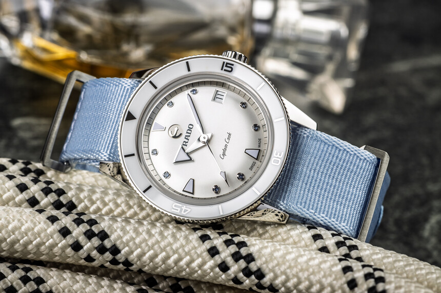 Sklíčko je vypouklé, safírové a odleskům brání oboustranná antireflexní vrstva. A co všechny dámy jistě potěší – existují tři různé varianty, na čem hodinky nosit. Pro elegantnější vizáž na modrém koženém řemínku, sportovnější styl doplní textilní NATO strap a ocelový náramek ve stylu „beads of rice“ bude vypadat dobře naprosto k čemukoli.