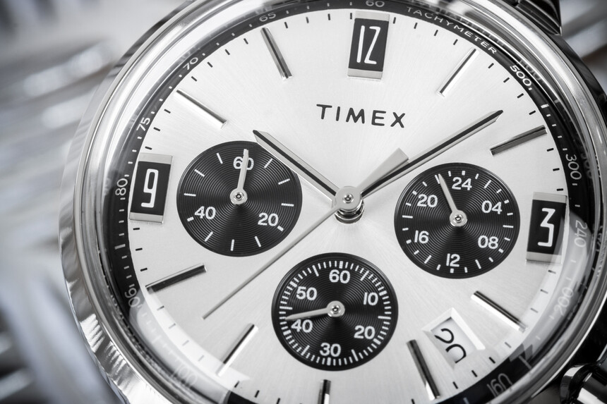 S chronografy Timex Q Reissue jako byste se vrátili do zlaté éry závodních hodinek. Nechybí tachymetrická stupnice a samozřejmě stopky, kde trikompaxové zobrazení sčítačů je příjemně symetrické.