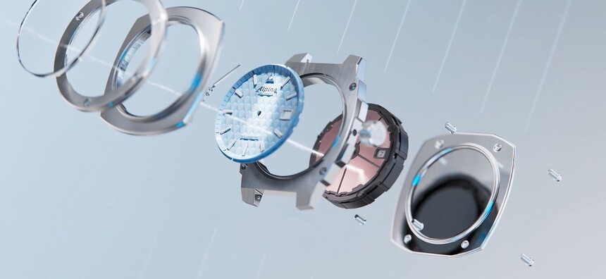 Solární článek je schován pod číselníkem s trojúhelníkovým vzorem (odkaz na slavné logo Alpiner). To vše v robustním pouzdře s voděodolností 100 metrů a s průměrem 37,5 x 38,9 mm. Unisexová záležitost, které se v první fázi dostalo hned pěti barevných variant.