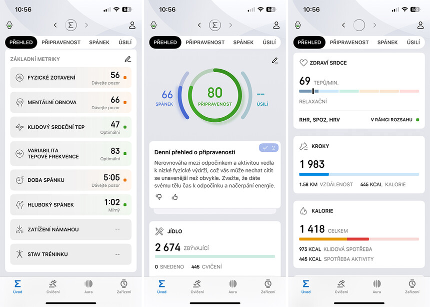Pojďme na to prakticky. Přiznejme si, že data budete mnohem častěji sledovat v mobilní aplikaci než přímo v hodinkách. A ve chvíli, kdy ji otevřete, na vás jako první vyskočí právě toto: