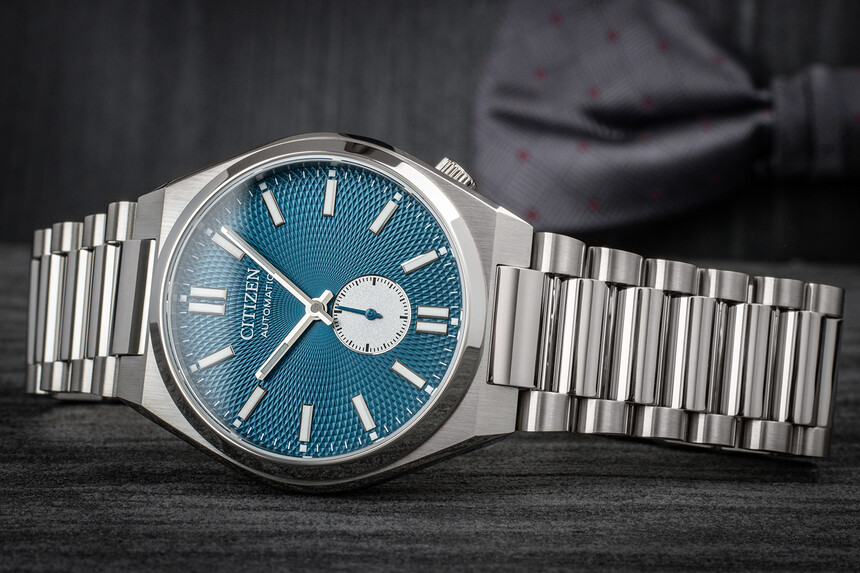 Jedná se o kalibr Citizen 8322, který je zajímavý, protože jej Citizen nepoužívá tak často. Pracuje na frekvenci 3 Hz, má rezervu chodu 60 hodin a v jistém smyslu je odpovědí Citizenu na (o něco dražší) řadu automatických strojků Powermatic 80 od Swatch Group.