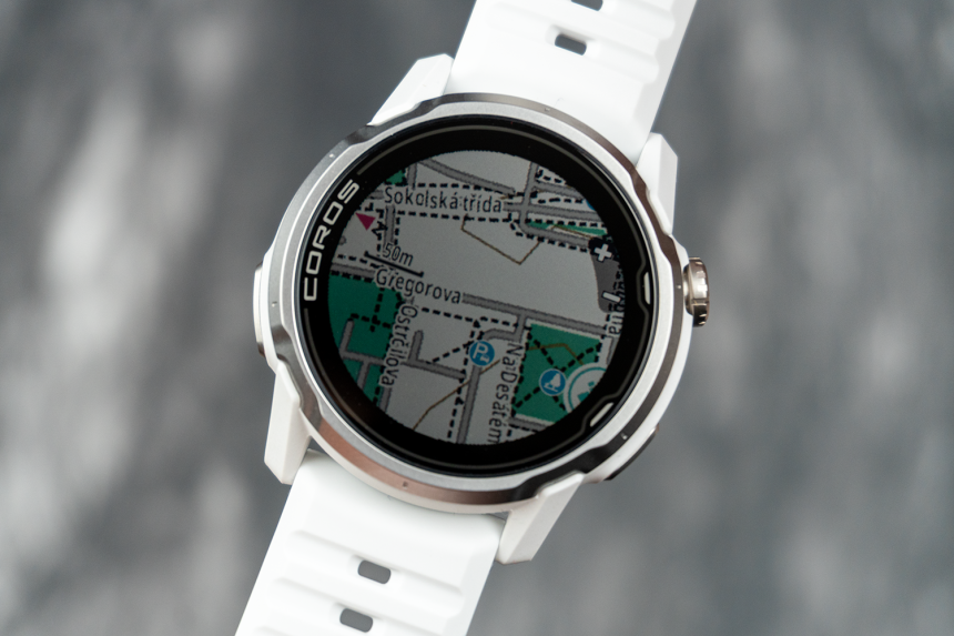 Mapové podklady celého světa (a k tomu zhruba 27 GB prostoru). Mnohem rychlejší, mnohem podrobnější (zoom až na 15 metrů). Názvy ulic, POI, vrstevnice, turn-by-turn navigace a navíc extrémně rychlý přechod na mapu pomocí akčního tlačítka. Coros to má opravdu vychytané a je vidět, že mají obecně monitoring spuštěných aktivit dotažený do detailu. Prostě se ukazuje, že to testují skuteční sportovci, a ne jen náhodní ambasadoři.