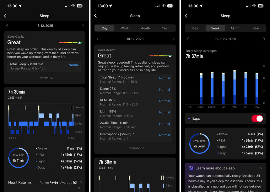 Nejdřív mě lehce zamrzelo, že Coros stále nemá bodové hodnocení na stupnici od 0 do 100, ale pak jsem si vlastně uvědomil, že je to možná dobře. Místo čísla dostanete slovní hodnocení, které vás tolik neovlivní. Představte si, že se probudíte, cítíte se fajn a najednou na vás vyskočí skóre 37. Hodně lidí si v tu chvíli začne únavu podvědomě vsugerovávat. Se slovním hodnocením se tohle děje podstatně méně.
