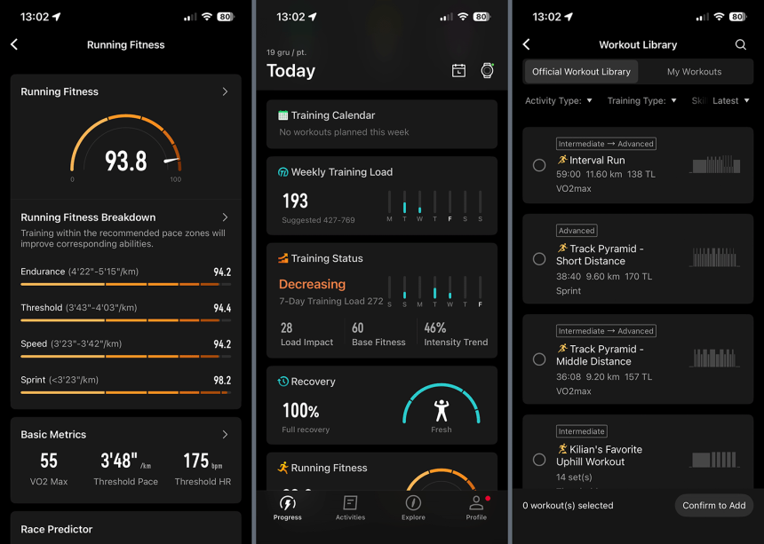 Coros si vždycky chválím i z hlediska tréninkové knihovny. Ať už jde o jednotlivé tréninky, nebo celé tréninkové plány, těžko se hledá jiná značka, která by to měla tak nabité jako Coros.