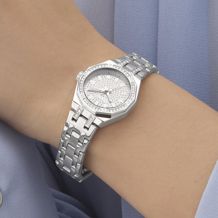 Guess si hraje s tvary, vzory i vykládání třpytivými zirkony, jakoby to byla ta nejsnažší věc na světě. Právě v té okázalejší, „sexy“ designové poloze se totiž cítí nejjistěji.