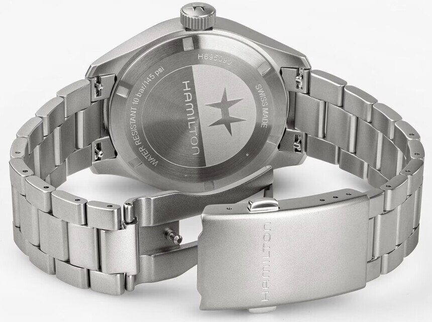 Pojďme se přesunout k poslednímu aspektu hodinek, a tím jsou barvy a řemínky. Hamilton zde vsadil na ověřené duo černého a bílého číselníku. Dlouhodobě se jedná o ty nejvyhledávanější a je to v podstatě taková sázka na jistotu. Zde nelze nic vytknout a je poměrně dosti možné, že v budoucnu ještě nějaké další odstíny přibudou. Obě barevné varianty pak bude možné zakoupit buď na textilním NATO řemínku, nebo ocelovém oyster náramku. Obojí již důvěrně známe z předchozích referencí a není tedy potřeba je zde zevrubně popisovat.