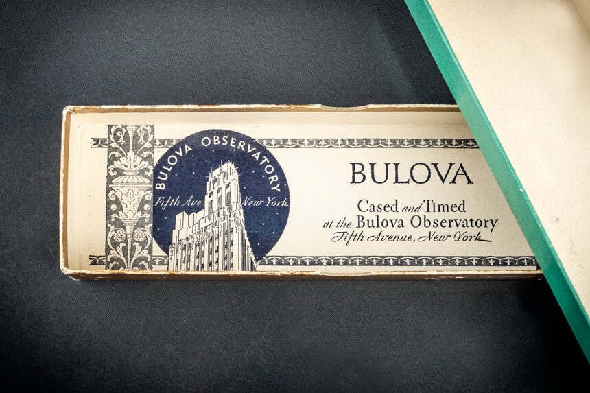 Z New Yorku nám pak přišel ještě jeden význačný model, konkrétně hodinky Bulova Academic Award. A už jenom jejich krabička napovídá, že se skutečně jedná o něco exkluzivního. Bulova totiž na začátku 50. let zakoupila speciální licenci od Academic of Motion Picture Arts and Sciences. Díky tomu mohla Bulova po dobu čtyř let exkluzivně vyrábět hodinky s označením Academic Award s designovými prvky odkazujícími na slavné předávání cen. Hodinky s tímto označením představovaly designový vrchol a pomyslný high-end tehdejší nabídky.