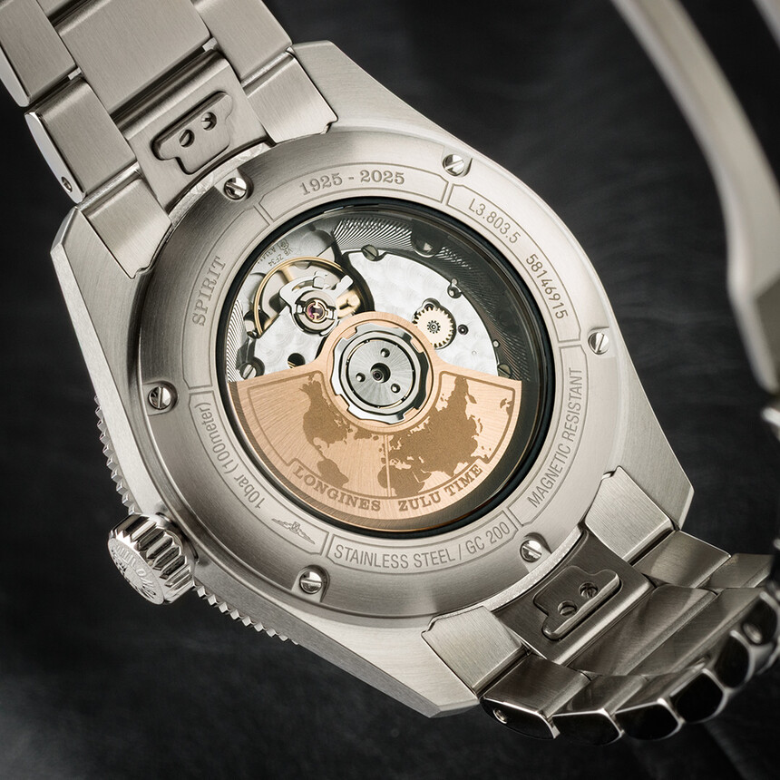 Ten se v základu inspiruje od svého tříručkového sourozence, modelu Spirit. I zde tedy nalezneme aplikované numerické indexy vyplněné štědrou dávkou Super-Luminovy. Nechybí ani stejný design ručiček nebo kosočtvercové hodinové indexy. Následuje aplikované logo Longines, nápisy Zulu Time a Chronometer a v neposlední řadě i mnohdy kontroverzní a debatované hvězdičky. Ty odkazují na prémiovost hodinek a vysokou přesnost strojku.