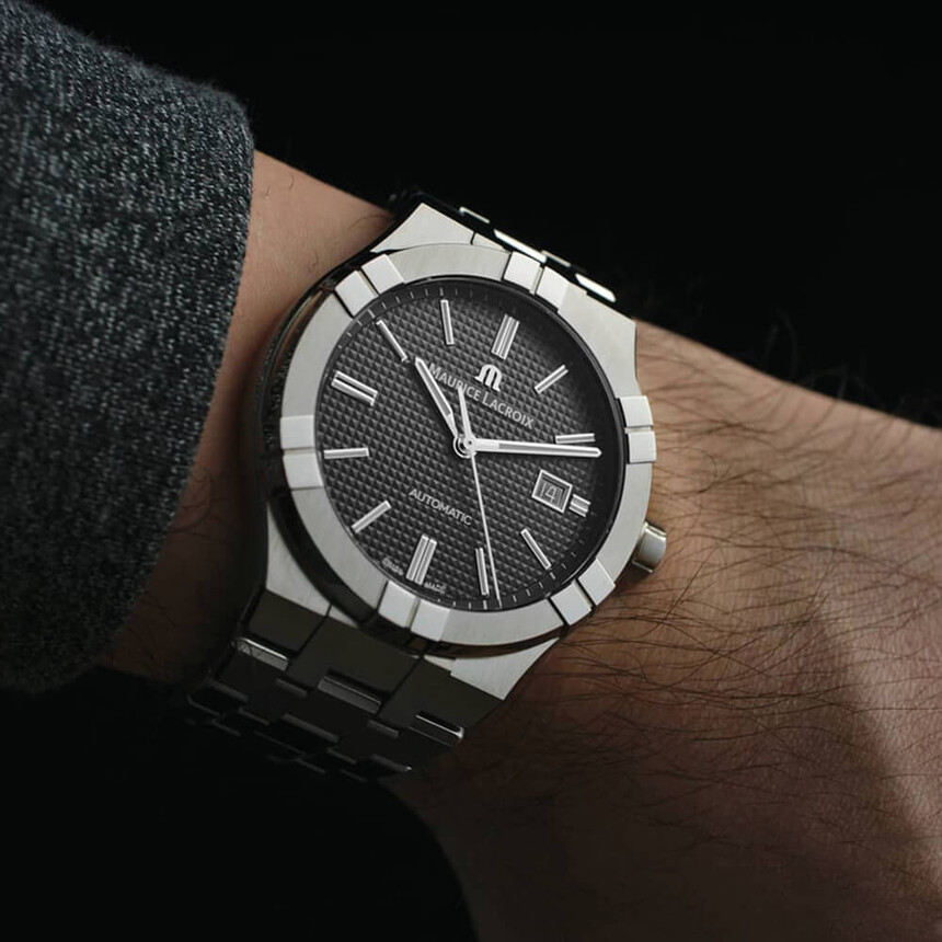 Maurice Lacroix Aikon jsou super daily GADA hodinky („Go Anywhere, Do Anything“). Nejlépe jim bude jako volnočasovým nebo sportovním hodinkám, ale nezaleknou se ani kanceláře nebo malého divadla. Mají velice charakteristickou lunetu a až překvapivě příjemně se nosí.