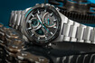 Samotná konstrukce pak vyloženě vyzývá k dobrodružství. Robustní ocelové pouzdro je testováno do 20 ATM a číselník kryje safírové sklíčko.