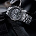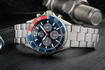 Ocelové pouzdro je doplněno odolným ocelovým náramkem s bytelnou sponou a číselník kryje safírové sklíčko.