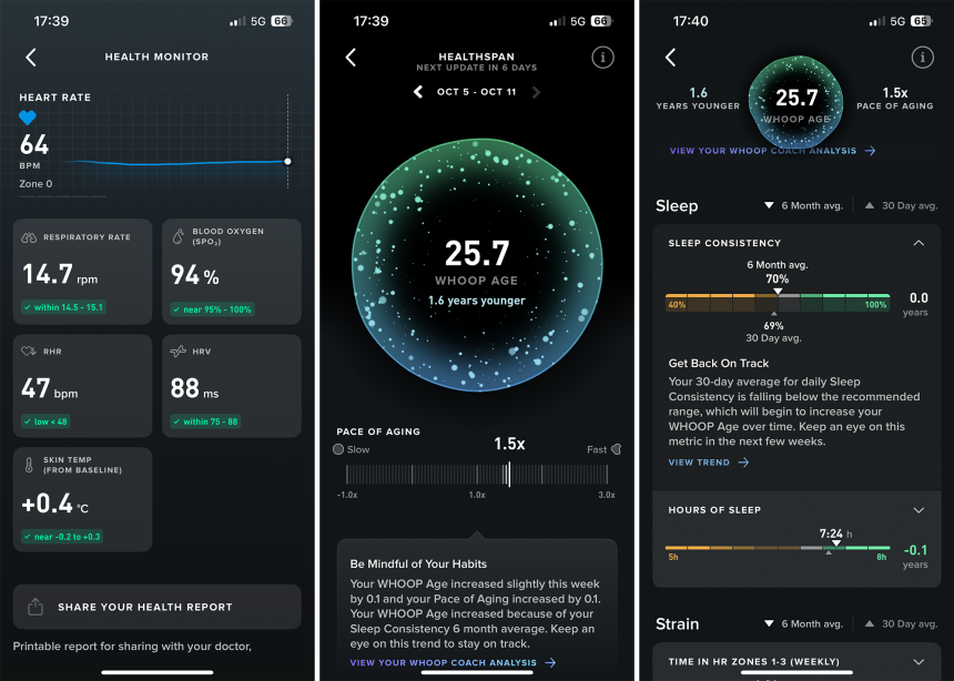 Třeba já se v době psaní článku dávám dohromady po vážnějším zranění, které mě vyřadilo na téměř tři měsíce, a podle Whoopu teď stárnu asi 1,5× rychleji – prostě proto, že nemám žádné aktivity, ať už v jakékoli zóně. Momentálně prostě nemám zónu ani fazónu.