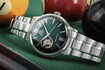 Open Heart je nezvykle velký a vidíte tak nejen setrvačku, ale i kotvu a část krokového kola. Nabízí se na kůži i ocelovém náramku (s číselníkem s kouřovým efektem) a varianty se od sebe liší také indexy.