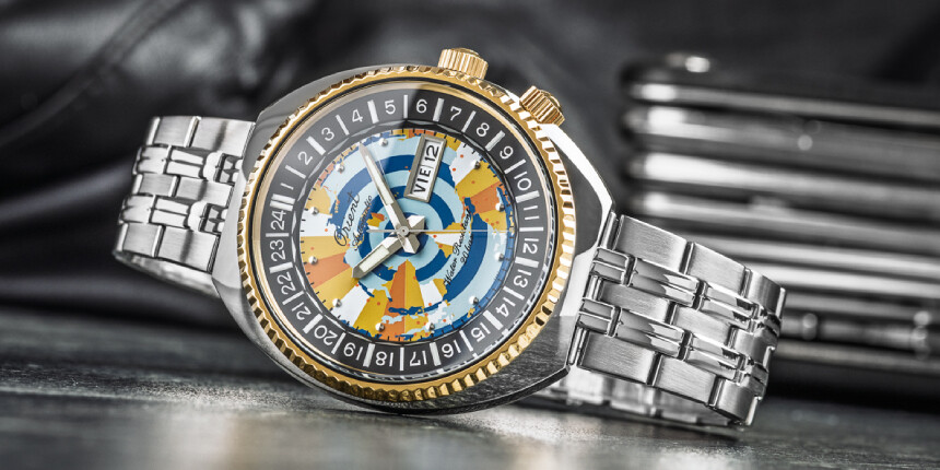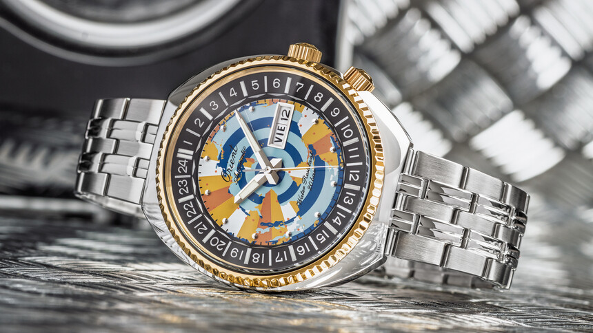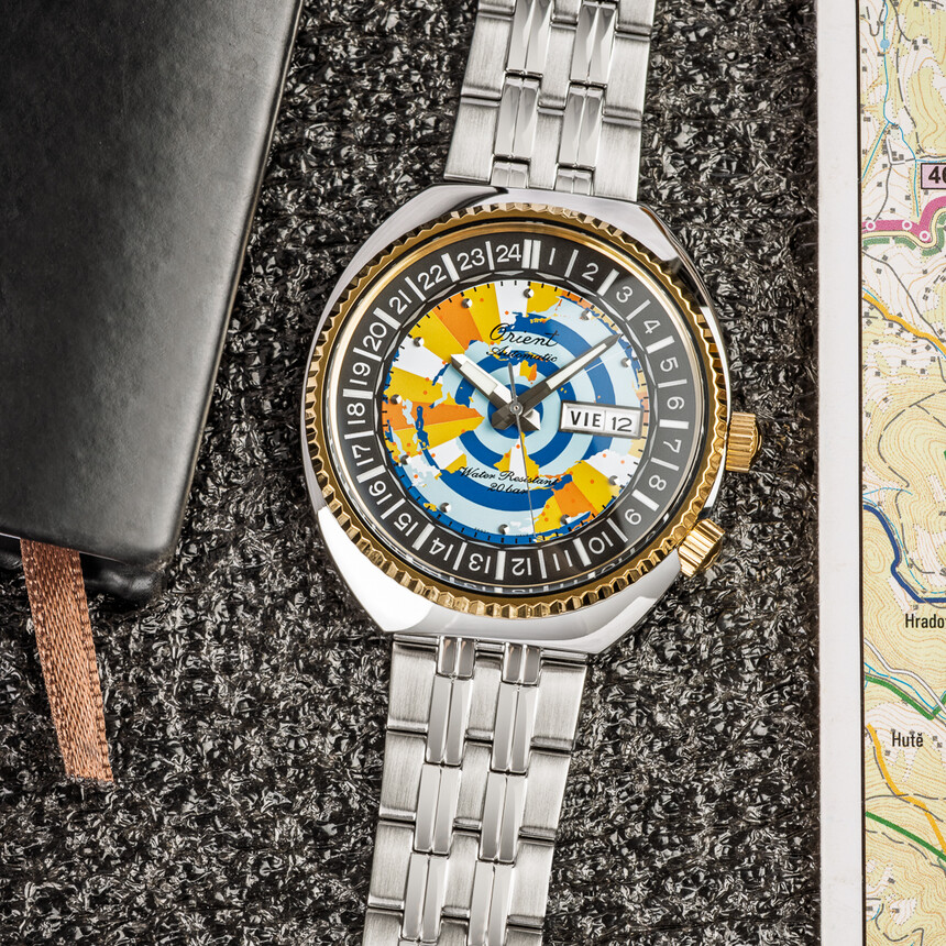 Zákazníci však více stáli právě o barevnou limitku. Už design pouzdra ala želva bez viditelných nožek je něco, na co nejsme (v roce 2021 i v roce 2025) tak úplně zvyklí. Ale přidejte vnitřní otočnou lunetu, druhou korunku a završte to barevnou mapou světa a voilà – je tu raritka, kterou by ve sbírce pohrdnul málokdo.