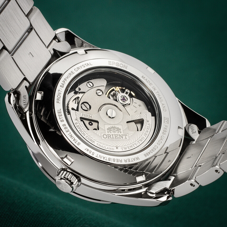 V hodinkách tiká manufakturní strojek Orient F6B24, což je strojek se 40 hodinami rezervy nátahu, s hackingem a možností ručního nátahu. Strojek je samozřejmě automatický a na rozdíl od nižší řady Miyoty má automat oboustranný nátah.
