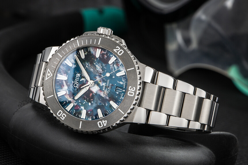 Právě toto pouzdro si Oris vybral už pro několik svých modelů se silně rezonujícím ekologickým poselstvím. Namátkou vybírám Aquis Bracenet, který vznikl ve spolupráci s německou organizací, věnující se sběru a recyklaci tzv. ghost nets – ztracených rybářských sítí, které dlouhodobě ohrožují mořský život. A z nich vyrobil číselník jako takový malý symbol boje za znovu čistou přírodu.