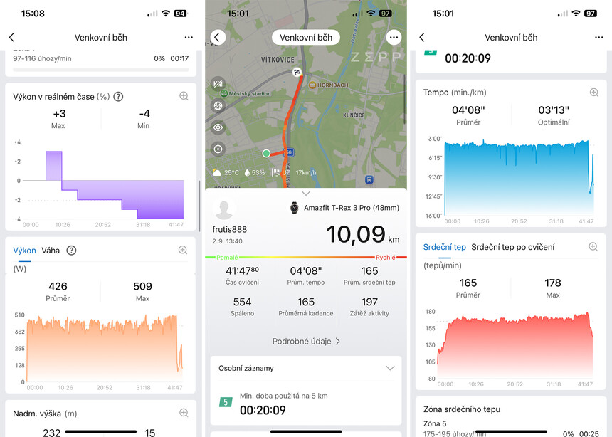 Dřív bych ještě vytáhl argument, že Suunto mělo výhodu díky kontinuálnímu měření tepu každou vteřinu, zatímco Amazfit ne. Jenže to už je minulost. T-Rex 3 PRO to dnes zvládá také.