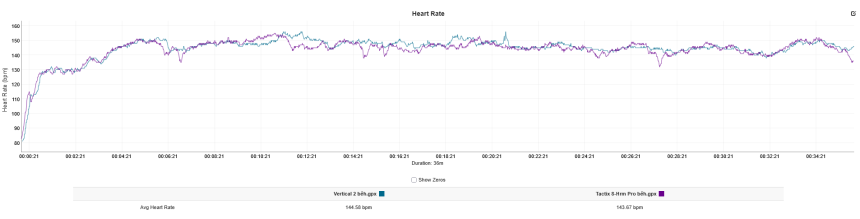 Modrá – Suunto Vertical 2, fialová – hrudní pás HRM Pro Plus