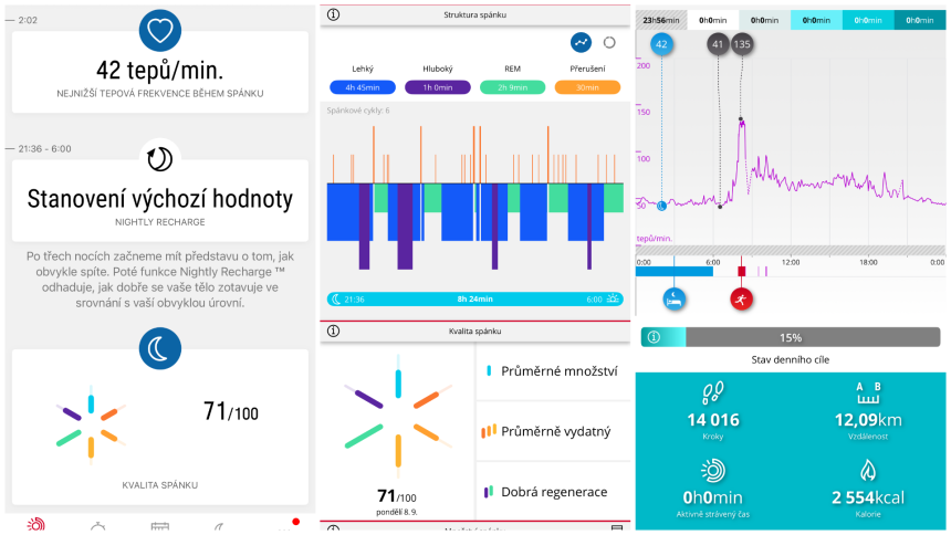Nightly Recharge monitoruje kvalitu našeho spánku společně s hodnotami tepové frekvence, VST a frekvencí dýchání k výpočtu vaší regenerace přes noc a na základě toho dává doporučení, jak se lépe popasovat se stresem nebo přistupovat k tréninku.