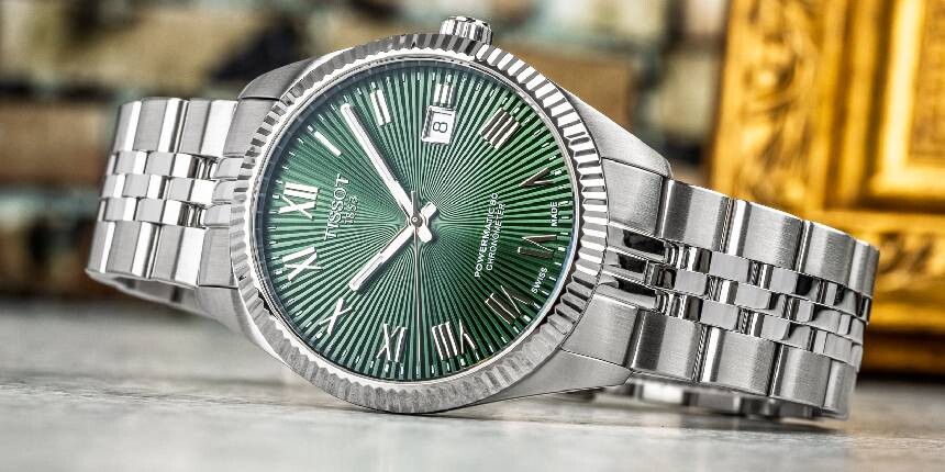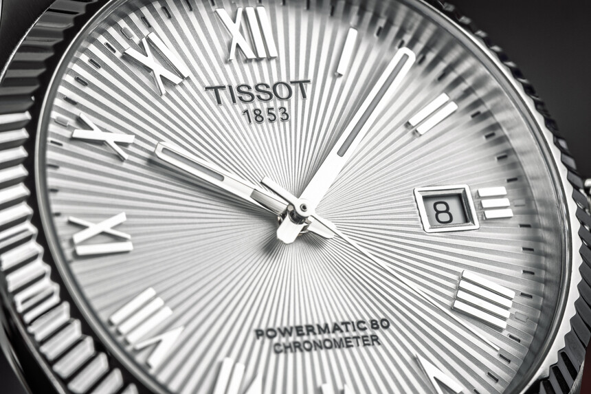 Osobně mě velice potěšily římské hodinové indexy, které jsou navíc aplikované. K hodinkám tohoto typu se skvěle hodí a Tissot tím navíc tento model dále odlišuje od levnější quartzové varianty, která disponovala pouze hůlkovými indexy. Kromě indexů pak na číselníku nalezneme ještě datumovku na pozici 3. hodiny a nápisy od výrobce, odkazující k vlastnostem strojku.