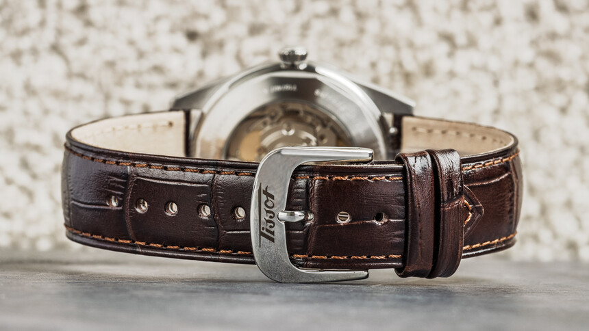 Model se světlým číselníkem je pak na hnědém koženém řemínku s klasickou trnovou sponou, na které nechybí logo. Musím pochválit i volbu rozteče 20 mm a také systém rychlé výměny. Výběr z alternativních i originálních řemínků Tissot tak bude opravdu jednoduchý.