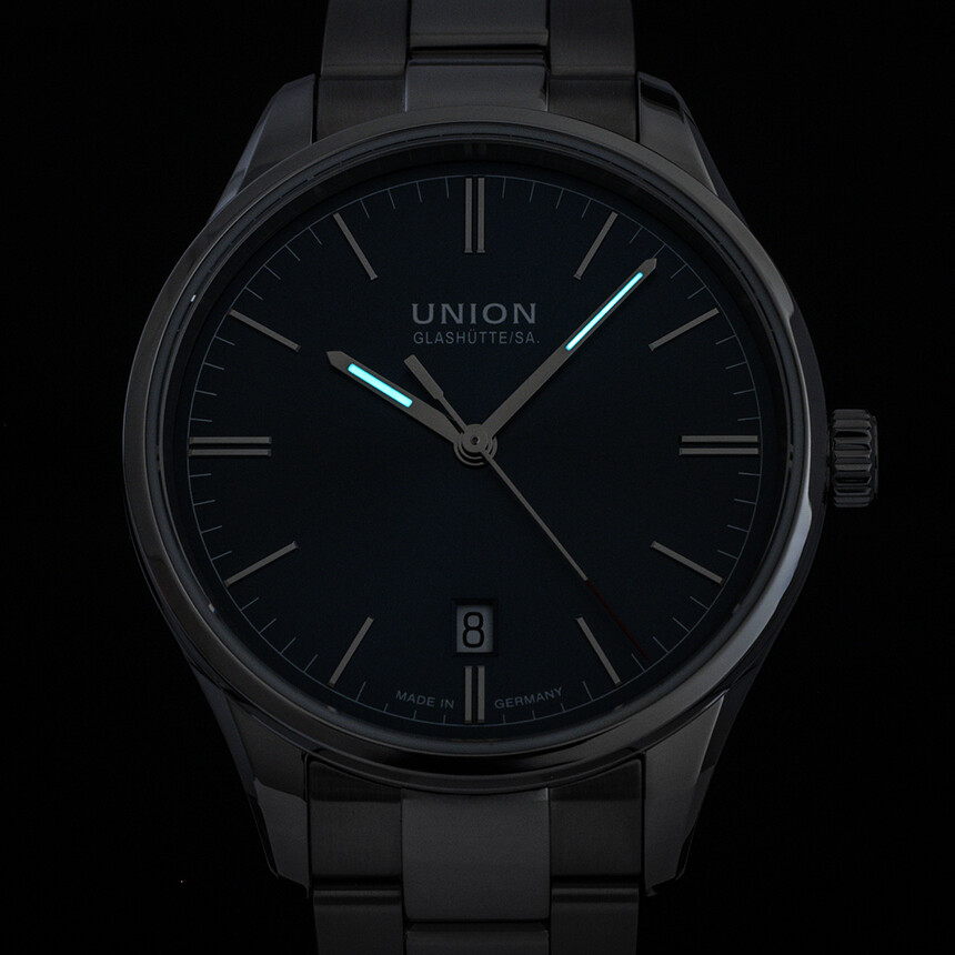 Posledním prvkem na číselníku je logo věhlasného saského výrobce. Pakliže vás zajímá historie značky Union Glashütte, rozhodně doporučuji přečíst i následující článek: