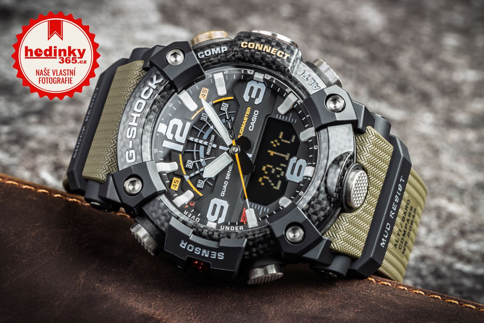 Zvýšená odolnost proti blátu a prachu je zajištěna také dvojitým dýnkem. Klasické kovové dýnko, na které jsme zvyklí z běžných G-Shocků je ještě ukryto pod dýnkem z pryskyřice, která je vyztužená skelnými vlákny. Samozřejmostí je také odolnost proti nárazu, což je podstata řady G-Shock. U tohoto modelu je ale posunuta ještě dále, a to díky použití karbonu, který je lehčí a pevnější než ocel. Jeho použití tak můžeme spatřit na lunetě, kterou tvoří tři vrstvy průhledné pryskyřice protkané uhlíkovými vlákny. O hodinky se tak nemusíte bát ani v těch nejextrémnějších podmínkách.