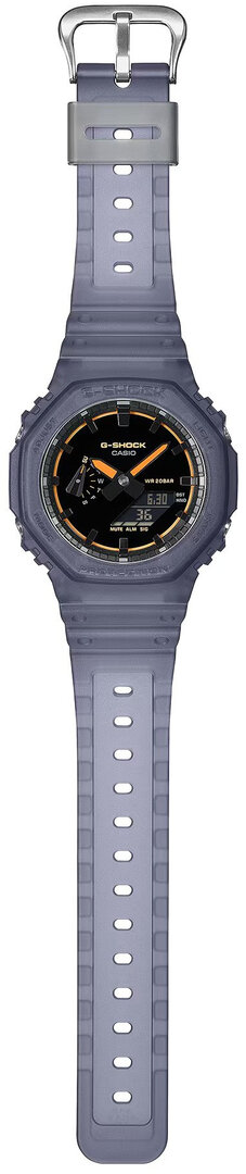 Díky použití karbonu, tedy konstrukce Carbon Core Guard jsou hodinky lehoučké a jejich „vnitřnosti" se podařilo vměstnat do pouzdra vysokého pouhých 11,8 mm, což dělá model GA-2100 snad nejtenčími G-Shocky vůbec. Průměr pouzdra, by se dal (ve světě G-Shocků) nazvat spíše jako „podprůměr". Ale právě díky tomu padnou hodinky dobře na ruku i „méně obdařeným" jedincům a snadno se schovají pod rukáv.