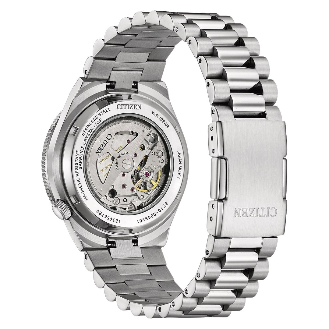 Mechanický s automatickým nátahem. Citizen 8210, Rezerva chodu 45h, 21.600 BPH (3Hz), 21 kamenů