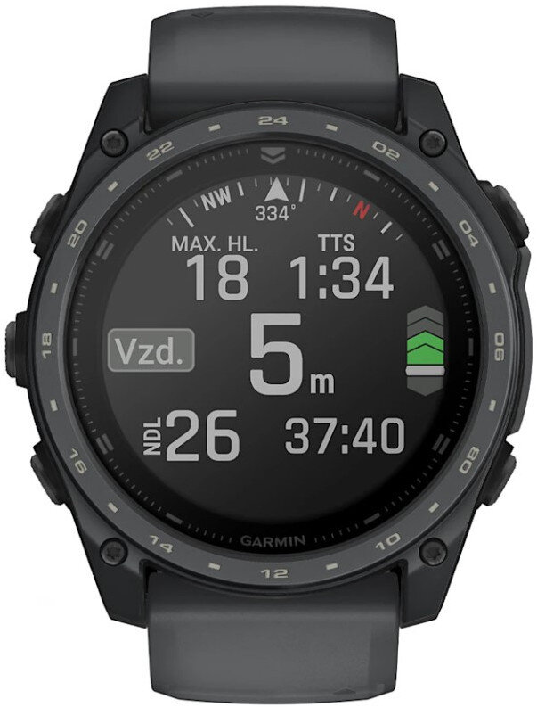 Automatická úprava nadmořské výšky Automatické spuštění/ukončení potápění Automaticky ukládá pozice zahájení a ukončení potápění Bezpečnostní zastávka Doba do bezpečného letu Doplňková kontrolka oznamující vynoření potápěče Hloubkové zastávky Indikátor rychlosti stoupání/sestupu při potápění Nastavitelný konzervatismus Plánovač potápění PO2 Podpora pro Nitrox Podsvícení Příliv/Odliv Režim APNOEA Režim s jednou směsí plynů Synchronizace záznamů o ponorech do Garmin Dive Tříosý kompas pro potápění Uzamčení dekomprese neproběhlo Vlastní prodleva ukončení potápění