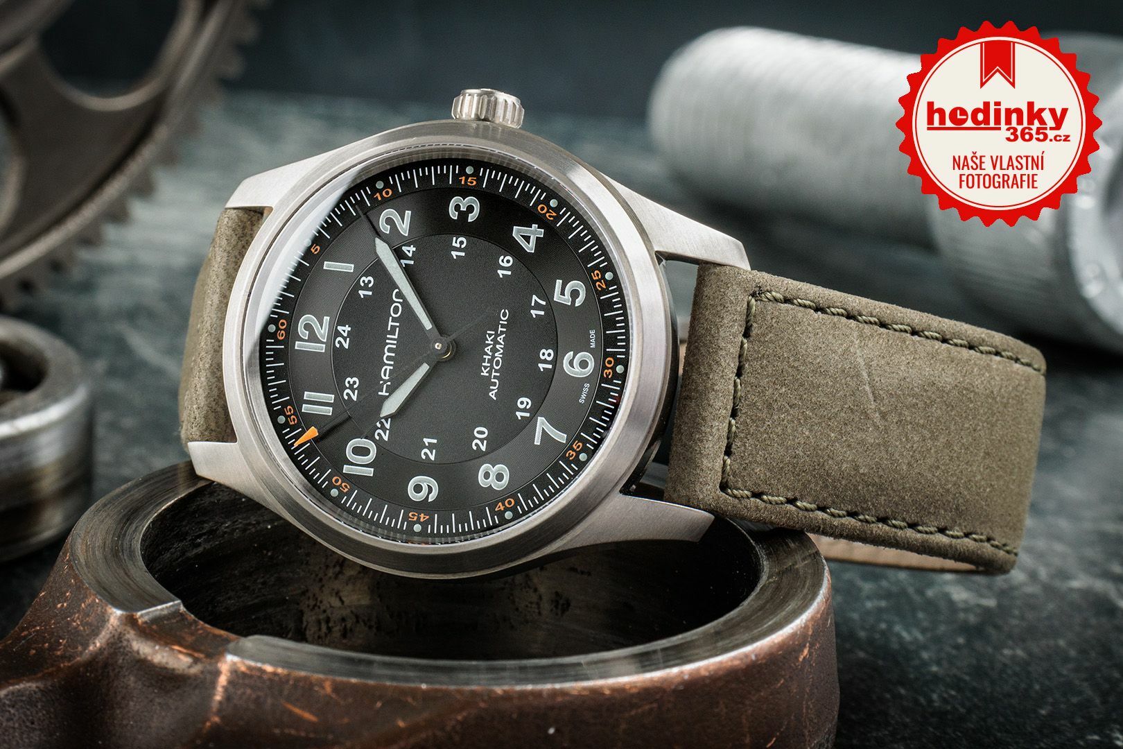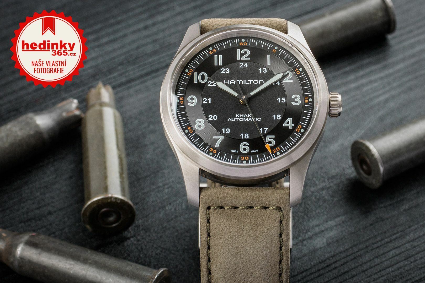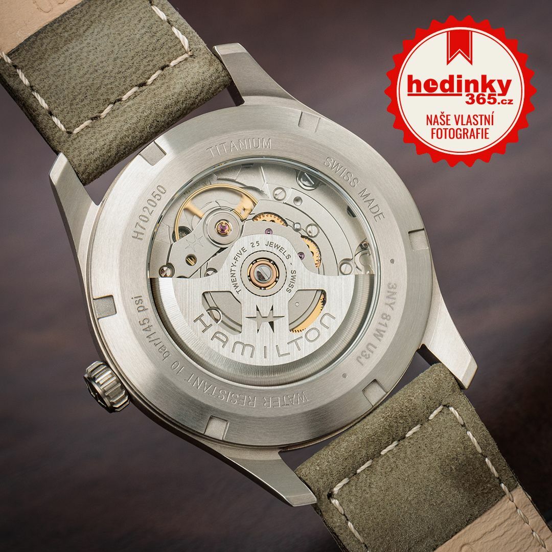 Polní hodinky tvoří jeden z pilířů v kolekci Hamiltonu a zachoval si i menší rozměry pouzdra 38 mm, aby byla zachována co největší autentičnost s historickou předlouhou (a taky díky tomu krásně sednou na užší zápěstí). Nicméně i do této klasické kolekce se přidal moderní prvek. Především materiál, protože pouzdro je vyrobeno z titanu. Díky tomu jsou hodinky příjemně lehké.