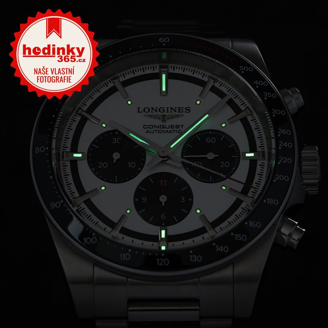 Mechanický s automatickým nátahem. Longines L898, Rezerva chodu 59h, 28.800 BPH (4Hz)