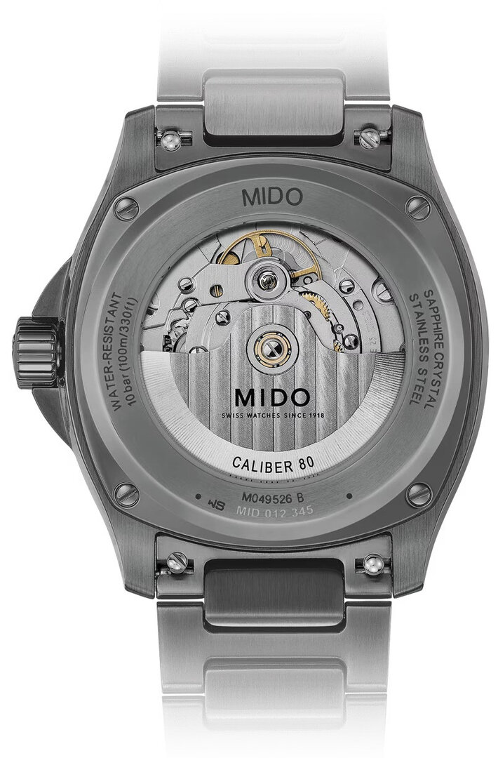 Mechanický s automatickým nátahem. Mido Caliber 80.621 postavený na ETA C07.621 postavený na ETA 2836-2 postavený na ETA 2824-2, Rezerva chodu 80h, 21.600 BPH (3Hz), 25 kamenů