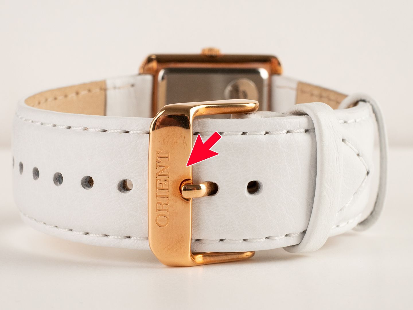 Dámské hodinky Orient FQCBD001W jsou elegantní kousek, který vynikne na zápěstí každé ženě. Hodinky kombinují zlacené ocelové pouzdro společně s koženým řemínkem, který má bílou barvu a disponuje prošitím. Pouzdro je navíc opatřeno zářivými skleněnými kamínky. Na bílém ciferníku vynikají zlaté indexy, číslice a ručičky. Tento klasický kousek je vhodný do každé společnosti, nebo prostě jen tak do práce.